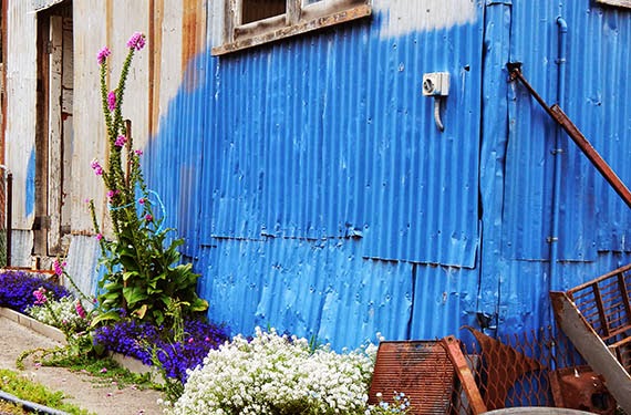 Our home may not be beautiful and neat, but one thing I can say for it… it has character. Like the side of the garage where some previous owner thought ‘what the hell, you can’t see this side from the gate’ and stopped painting it blue. And all the rusty bits of metal leaned up against the corner to stop the dogs from excavating all my plants in pursuit of some critter burrowed under the shed.