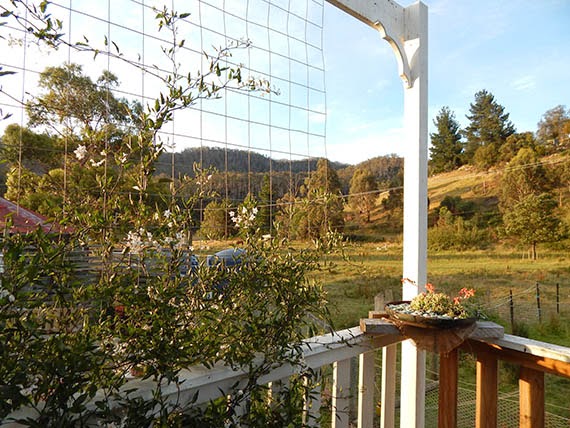 The plan is that when we roof the back deck we’ll just put more trellis on the corner and make it sort of like an arbour area where you can sit in dappled sunlight with plants growing around you. Perhaps a pink banksia rose… I’d love a purple potato vine but they’re not so hardy, and I’d love a jasmine but I’ve killed two of them so far.
