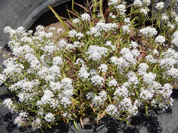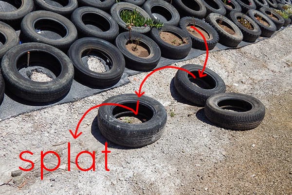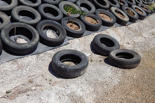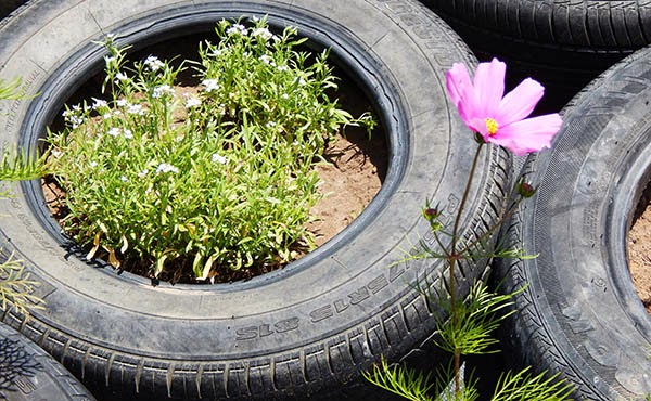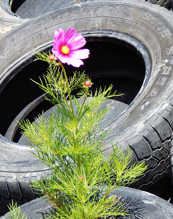 Anyway, I leave you with a couple of pretty pics of the tyre embankment which shows that one day, this will be a pretty wall of plants and not just a row of tyres.
