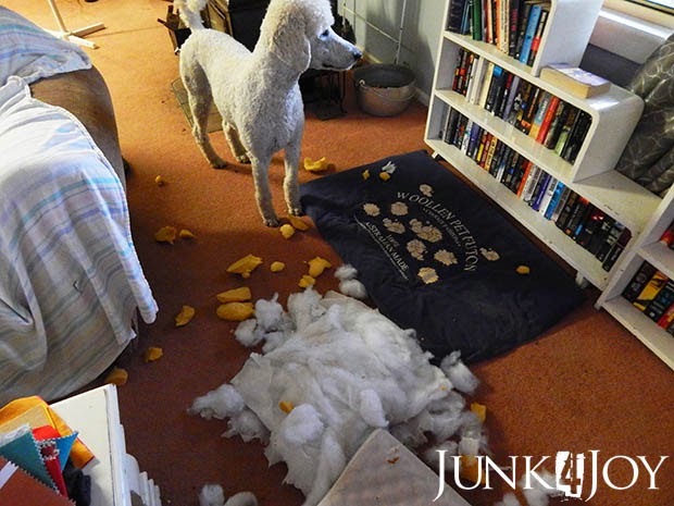 Meanwhile, Romeo decided to do some of his own organising. He decided it was time to remodel the dog pillows.