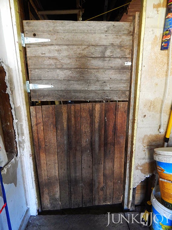 Before I knew doors were going to be the trend I made my own shed door in the casita. Up till now we’d had a half door, bottom only obviously (top only would have been plain stupid!) between the casita entry and workshop. Since I sometimes put the poodles in there when grooming customers arrive and leave, I needed to close them in better.