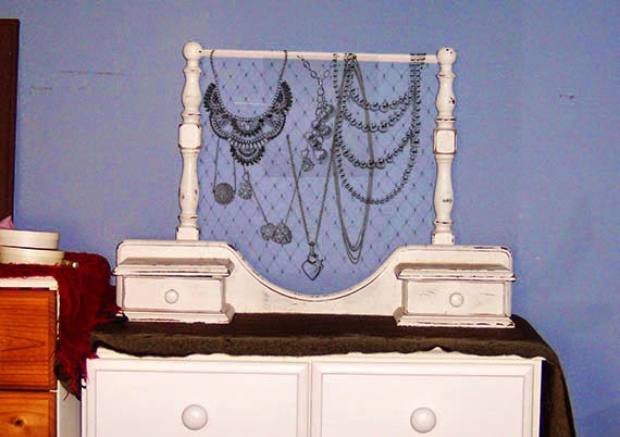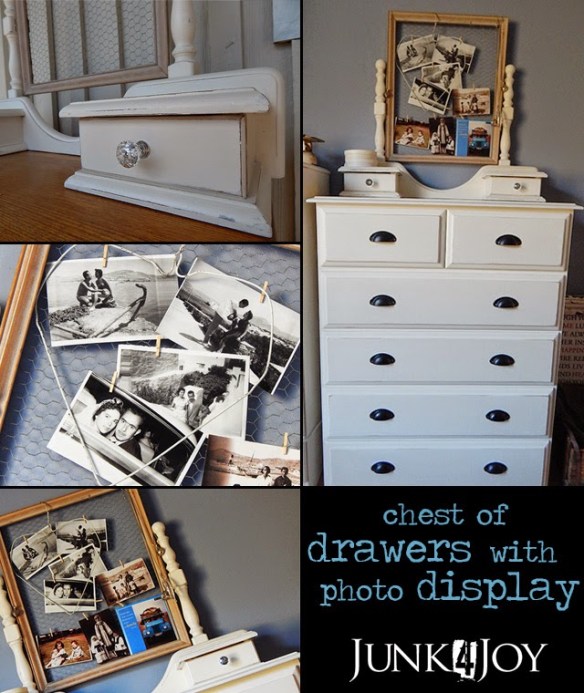 Gosh! I love what you did with that whatcha-ma-call-it piece with the drawers. It was genius to put a picture frame in there! I like seeing the pictures, and I love the saying on the card, too. The little drawers are lovable, too. I like how you changed out the knobs, especially the crystal ones. It's amazing how a change in knobs make a dresser so different. You did a fine job and should be very proud. Birdwire, huh? If we are trying to act like we have some class, we call it poultry netting. Otherwise, it's chicken wire! I love the differences in what we call things – not every thing, just some things. It makes life interesting!