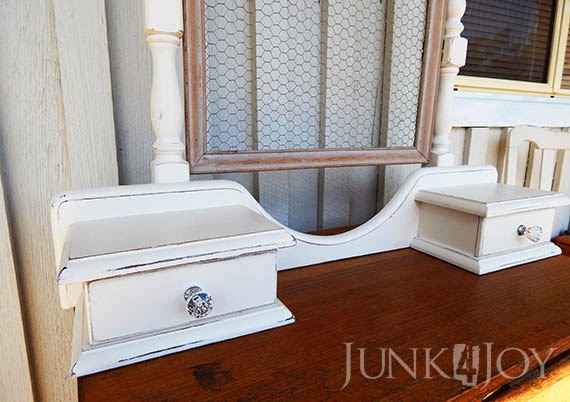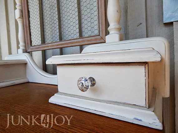 Everything was painted the same shade of off white homemade chalk paint that I used on the other chests of drawers, was distressed a little bit then waxed with clear wax.