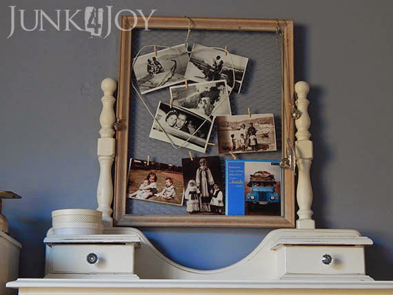So, what I ended up doing in the end was finding a frame that fit between the posts, or whatever you call them. The one I found was perfect as it was, I liked the white washed colour so I didn’t paint it, just added birdwire.