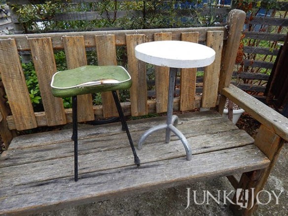 And these two cute stools. I actually bought them both for the legs – as a way to display some seat pads made at work, but they’re cute. They will be remade into side tables most likely.