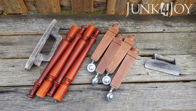 And these two cute stools. I actually bought them both for the legs – as a way to display some seat pads made at work, but they’re cute. They will be remade into side tables most likely.