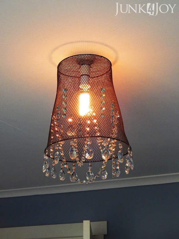 In yesterday’s post I said take note of the upcycled bin light… cause here it is again! Only a bit fancier now.