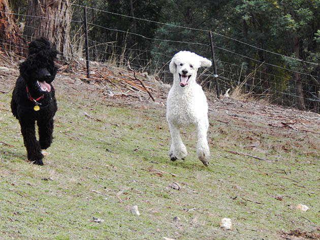 Today was a busy day. And a fun day. Our friends Mary and Zephyr came over for a visit (and grooming session). Usually when Zephyr comes over to play we all go out for a walk in the top paddock which has the best view on our property. Then, once the poodles are nice and dirty, we go back and they all get a groom.
