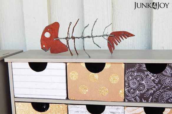 Here’s a closeup of a tin and wire fish made by Wayne. Cute isn’t it?