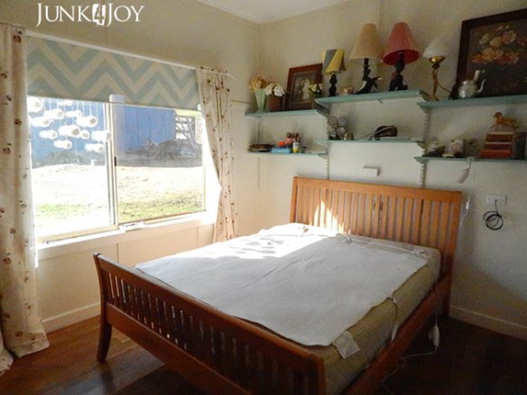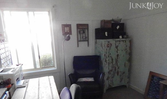 Here is the same corner once the room was finished. Notice my new wardrobe? I’ve put shelves in it and am using it to store craft stuff. I’ve never distressed anything this much before and I’m not sure I got the balance quite right.