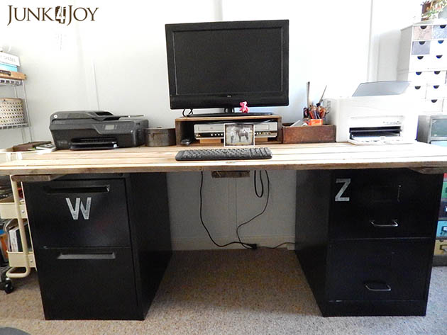 The desk I was using in the old office wouldn’t go through the door to the new office, so I had to make do using the filing cabinets and an old shed door.