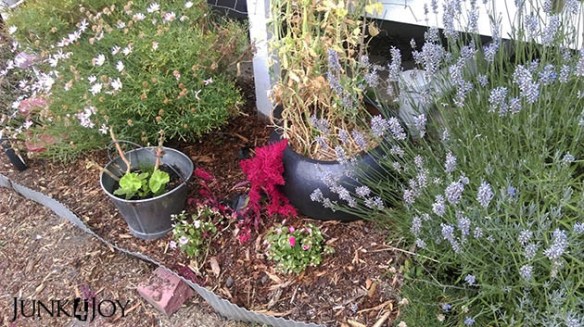 I ran out of pots to use as discouragement so I grabbed my old kid’s tricycle. It doesn’t look too bad there… I think I’ll leave it there and let the plants grow around it.