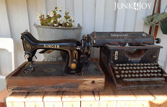 Other than that, I got this old singer from the tip shop. The base is broken but I’d love to find a way to grow a plant around it. Same with the typewriter. I got them both with the plan of making them into garden art. I can put a small pot into the centre of the typewriter, something which will grow up and hang down over the keys a bit. The sewing machine… maybe I can remove the base and sit it in a container and grow a plant around it…