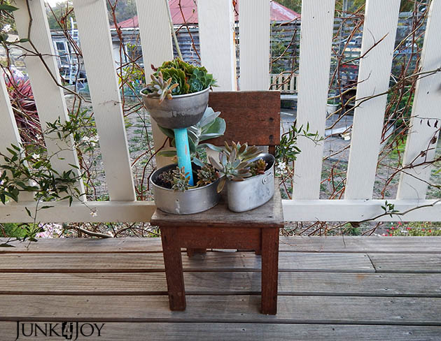 I found this little chair at the tip shop a couple of weeks ago. I had planned to fix it up but for now its holding some of my succulents on the front porch.