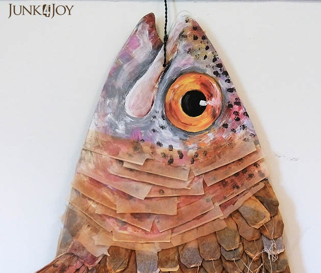 Anyway, the tea bags and a trout seemed the perfect match for an art project. For Art From Trash of course. This is another of the projects I created at work with the help of one of the guys.