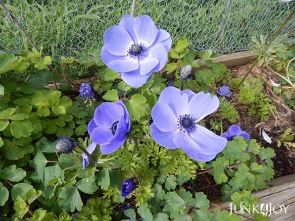 Meanwhile, the rest of the garden is blooming as well. My anemones came back this year – I have my own method: In early spring I cut off dead flowers to encourage more blooms. At the end of the summer I let them go to seed and spread seeds in the garden beds.