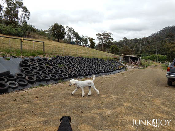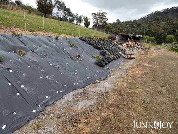 At this stage everyone said it wouldn’t work. The tyres would slide down. The weight of the tyres, filled with dirt, when wet, would create an avalanche.
