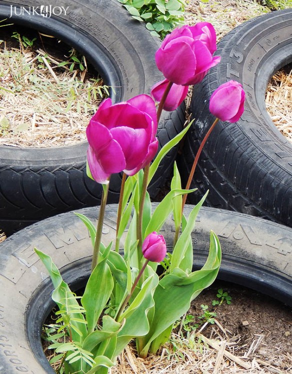 Love the tulips. These are part of a section of tyres filled with bulbs. I’m thinking I’ll sprinkle alyssum seeds in the tyres as well so there’s something in them all through summer.