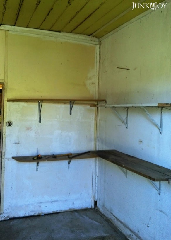 There were quite a few shelves to take down. What I imagined would be a quick job was a monster. Some of the screws were so hard to remove I ended up breaking the plaster and prying one of the suckers off.