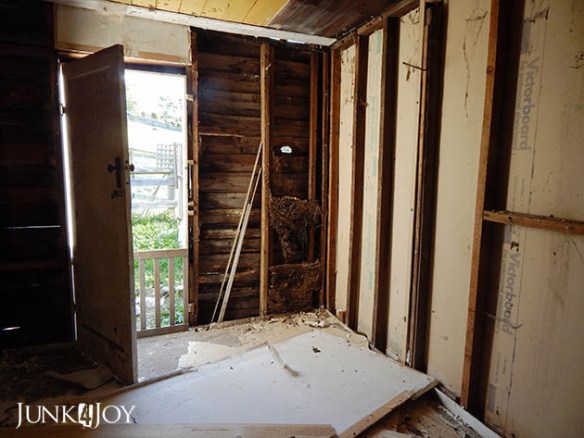 Since I’d already pulled out a section of plaster I thought, what the hell… I’ll pull it all off and pine line the entire room. Fresh start. All nice and clean…