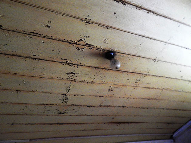 And yes, thats a hole in the outside wall you see there. With years of old bird nests in the wall beneath it. Triple eek.
