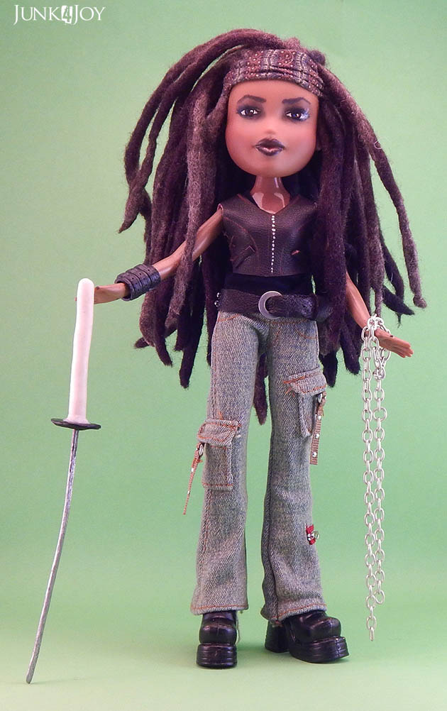 Meanwhile I became obsessed with doll remakes and repair. I watched videos. I read blogs. I itched to make my own dolls. I found some Bratz in a local 2nd hand store and brought them home. One had her hair cropped off and that inspired me to make Carol from the Walking Dead. Another was a black girl so it was obvious she was Michonne. I chose these characters because I love them and find them inspiring.
