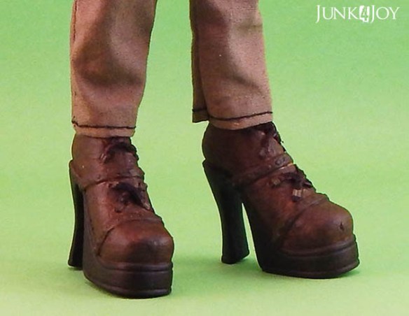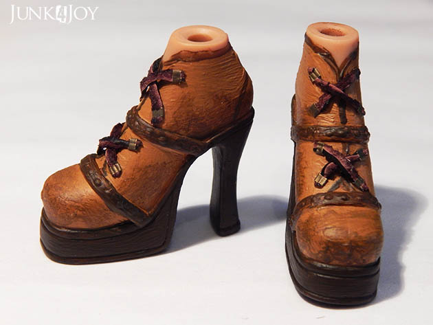 Since Bratz feet and shoes are all one, I had to find a way to make Carol some boots. At the time I didn’t have any which suited, the best I could do were these high heeled sandals which I made into boots.