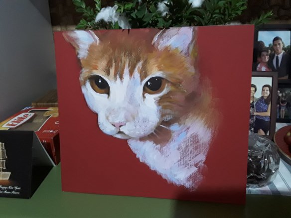 This is a friend’s cat. For her I used a mix of dry brush and watered down acrylics. She’s not finished yet but I like it much better. I think I found the way I like to work best.