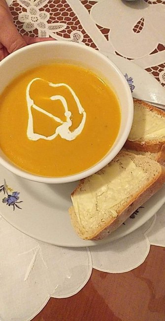 I bought a microwave, a toaster, a wooden spoon and few other little bits and pieces I needed in the kitchen. I really wish I’d packed my beautiful wooden chopping boards… And I made rizogalo and pumpkin soup yesterday. Yum.