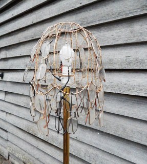 The idea of this lamp, the “Reading Lamp”, is that its made up of broken reading glasses in place of crystals. And the best thing about it is that you can keep adding to it. Never waste another broken pair of reading glasses again!