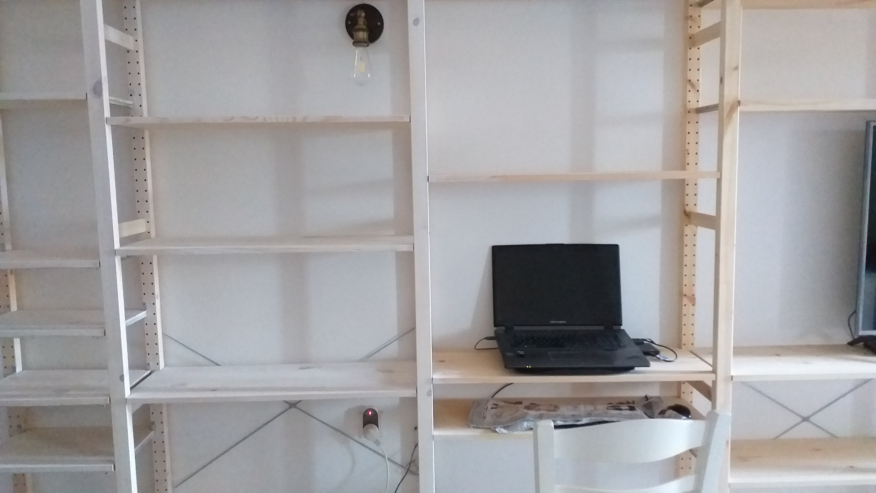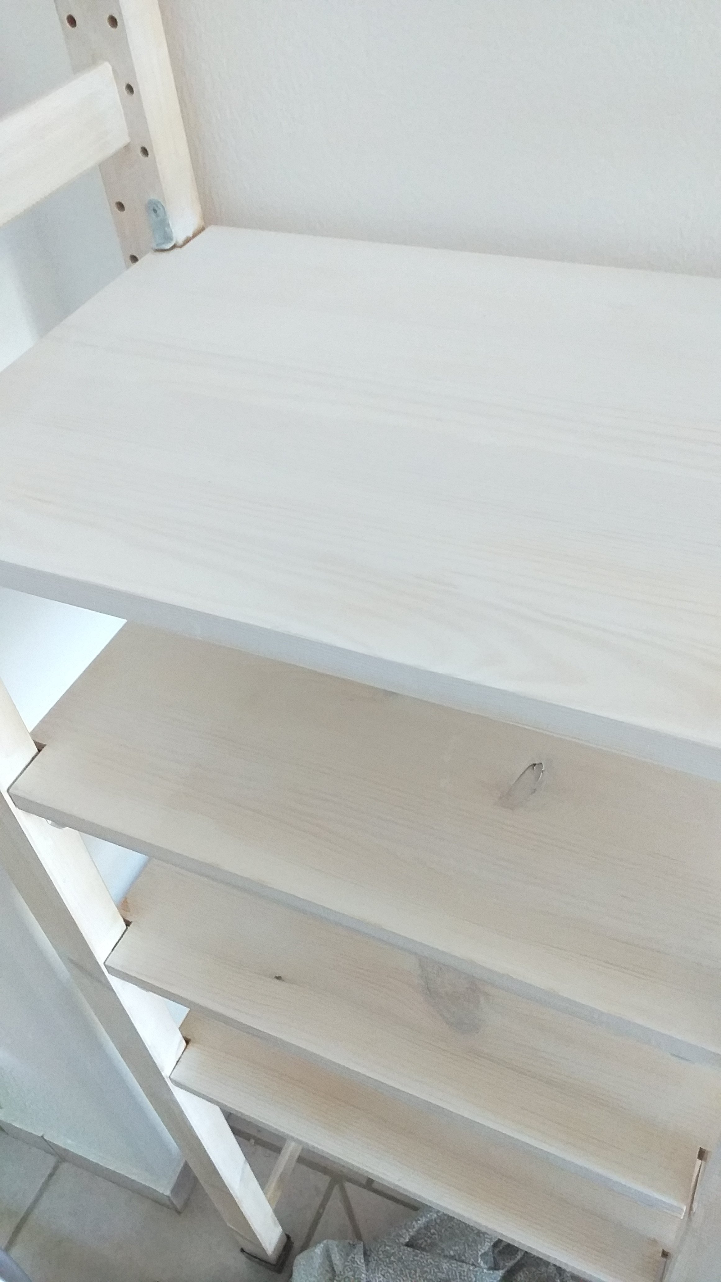 I still have to do it in sections, but now I have the whole first section (ie half the bookcase) painted. I still need to varnish the bits I painted before I can put it back together and start on the next half. I can’t do it all at once cause I dont have the space. Its way too windy to varnish outside cause things will get stuck in the varnish. Liming was quick and I did that outside since I can sand any dead insects off anyway. Not that I need to… it dries so fast.