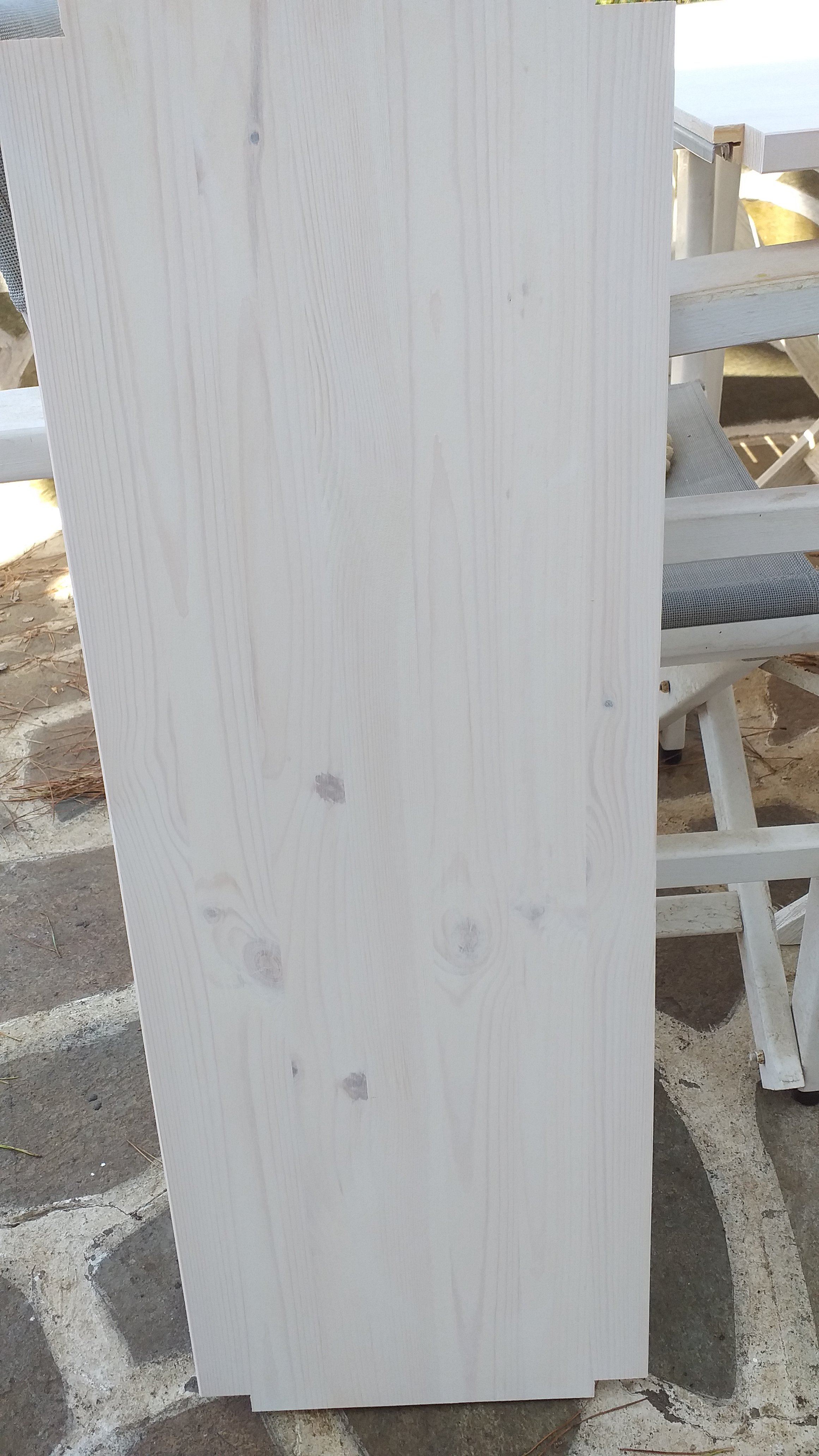 I wanted the wood grain to show through so I just used some white acrylic paint I found in the cabinet when I bought my place, watered it down and used a kitchen sponge to apply the paint, rubbing it in and spreading it over the timber. I found I needed two coats to achieve the look I wanted… but I’m halfway there on the first half now.