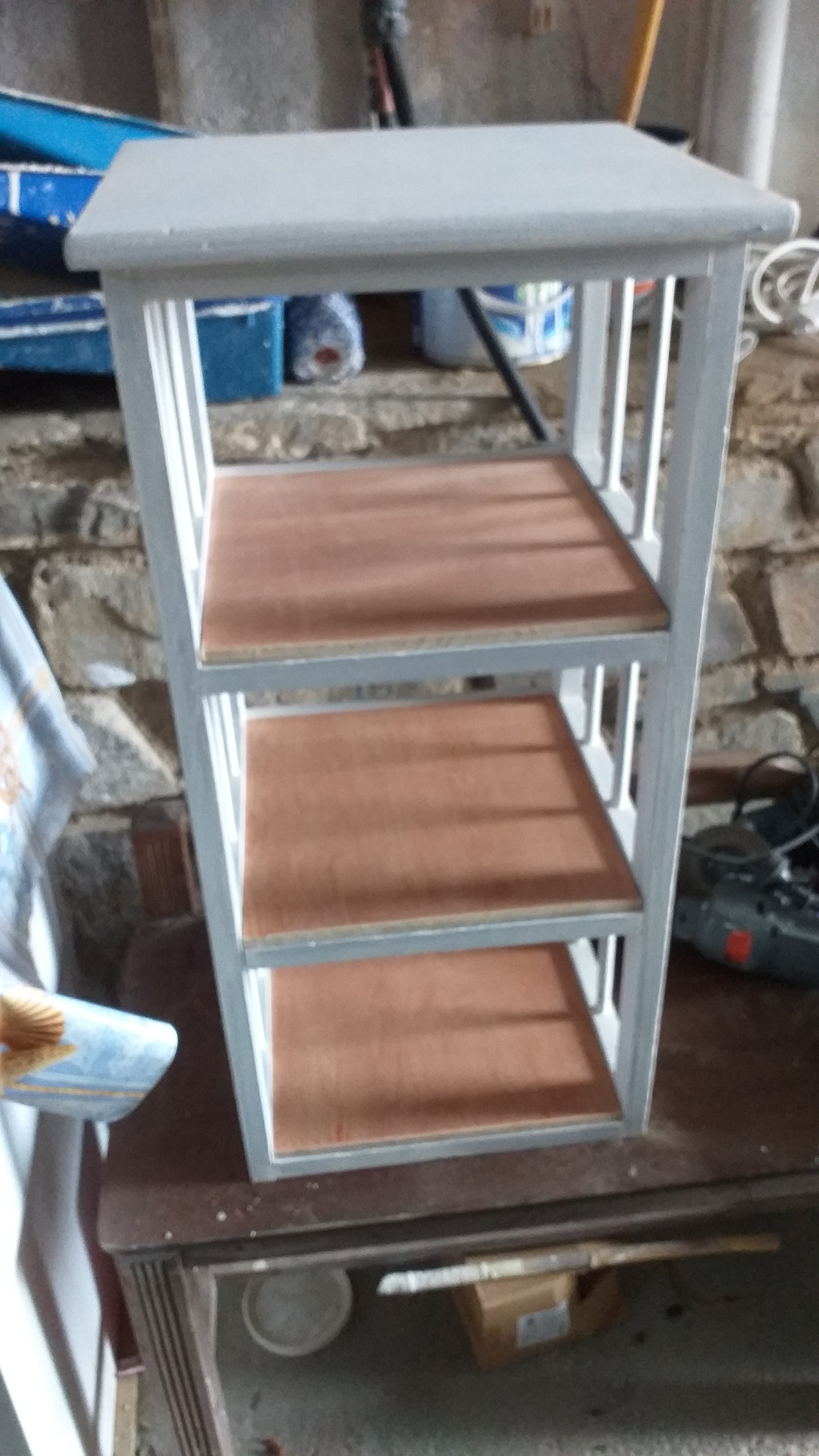 I cut some odd bits of plywood to create shelves for this little stand thingy I got from what looks like a tip, acts like a tip shop but the owner treats like an antique store. Really. Its full of junk and he wants top euros for the crap.