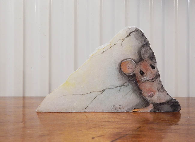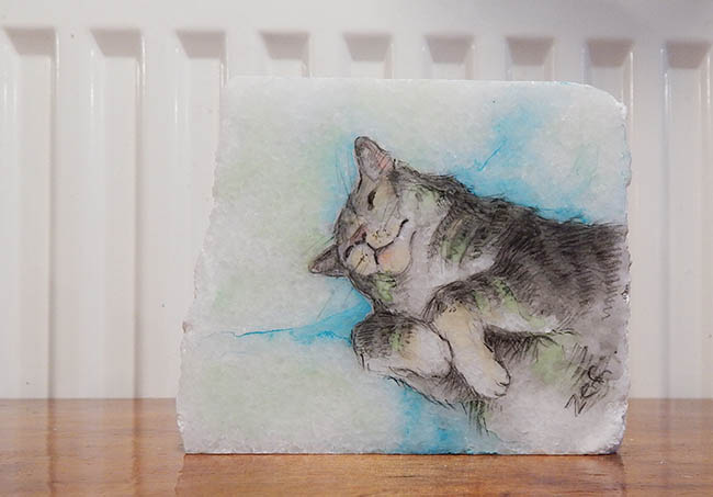 So, I’ve been doing more paintings on the marble pieces I had. Experimenting with different mediums and paint thicknesses. The blue eyed kitty is more opaque like a gouache.