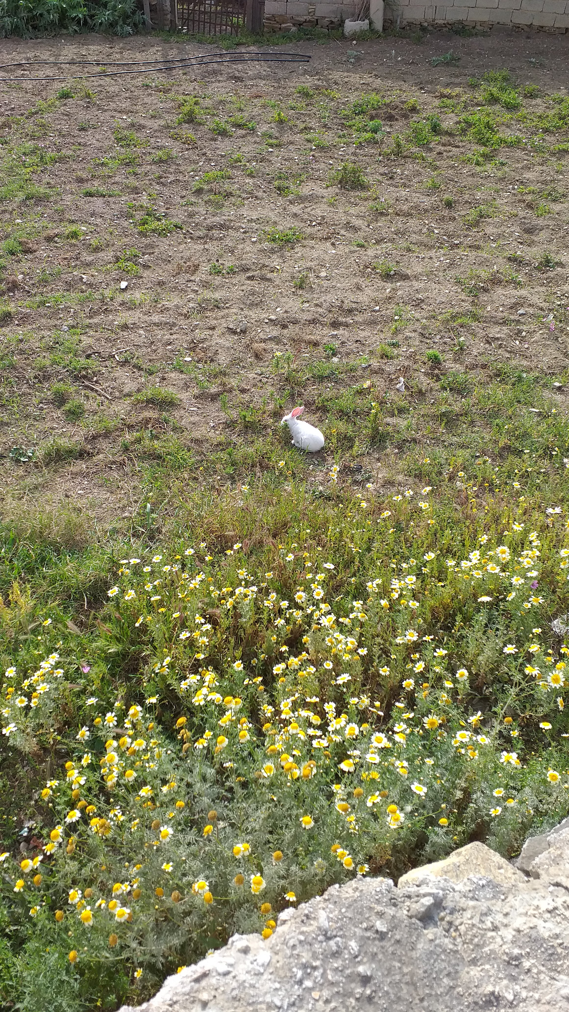 What was surprising was seeing this white rabbit! Turns out there are two white bunnies living in this little field with the chickens. Apparently they never run away. How cool is that?