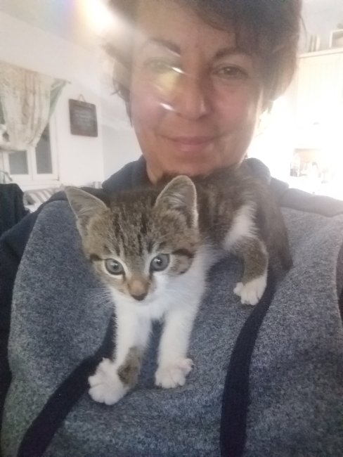 Not easy to type with a kitten wanting to be hugged all the time. When he isn’t typing for me he’s climbing all over me and yowling if I put him on the ground. sigh. Worst still is he’s learned to climb up my legs (ouch) to get up onto my lap.