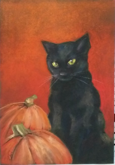 These are two kitties I did recently. I did the Halloween one below for the mini art competition we had last month and while I was in the mood I did the black cat as well.