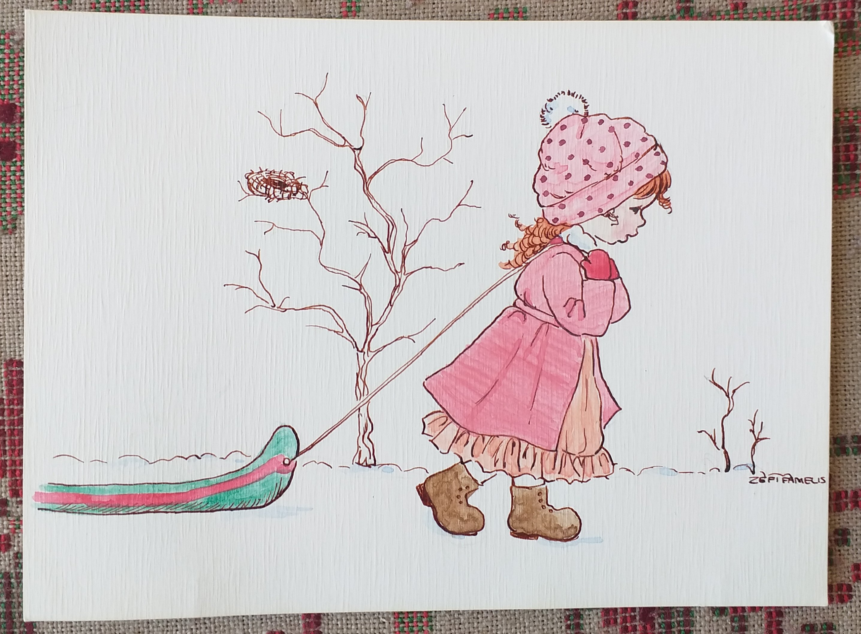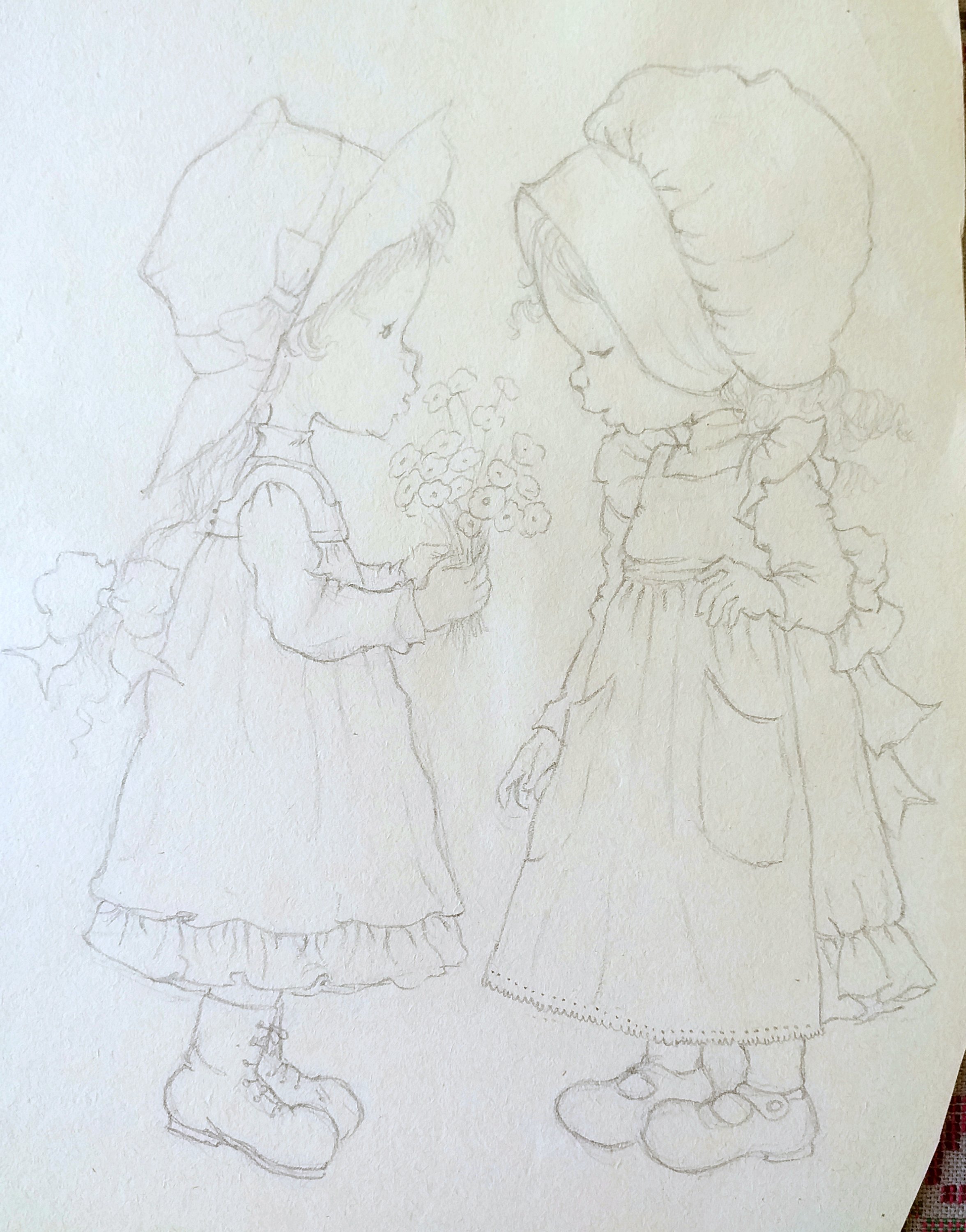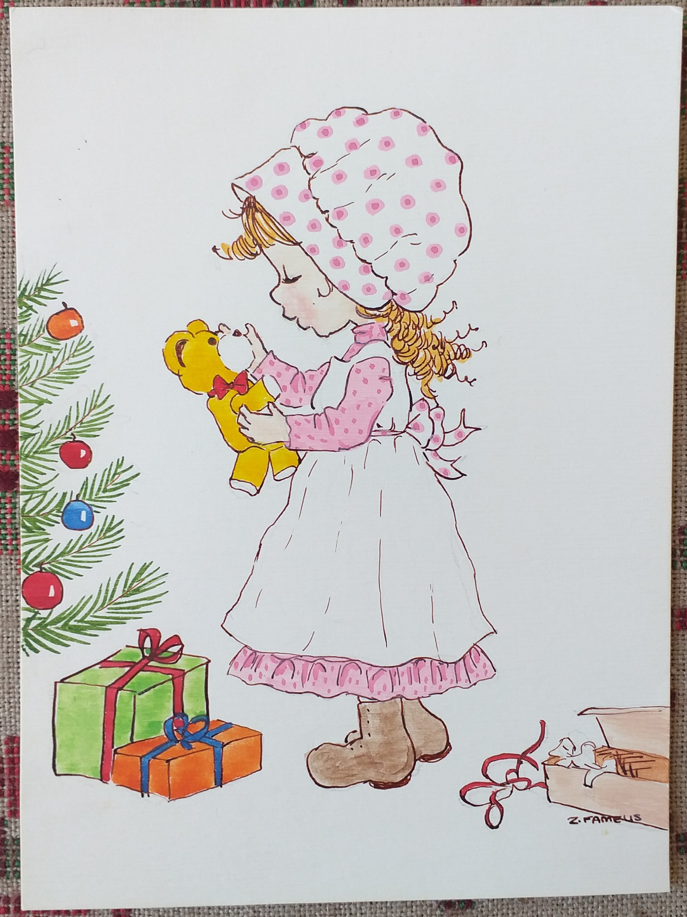 Then there were the Holly Hobby years, when I sketched little girls everywhere and made hand painted cards for Christmas…. (I was also very much into letter writing back then.)