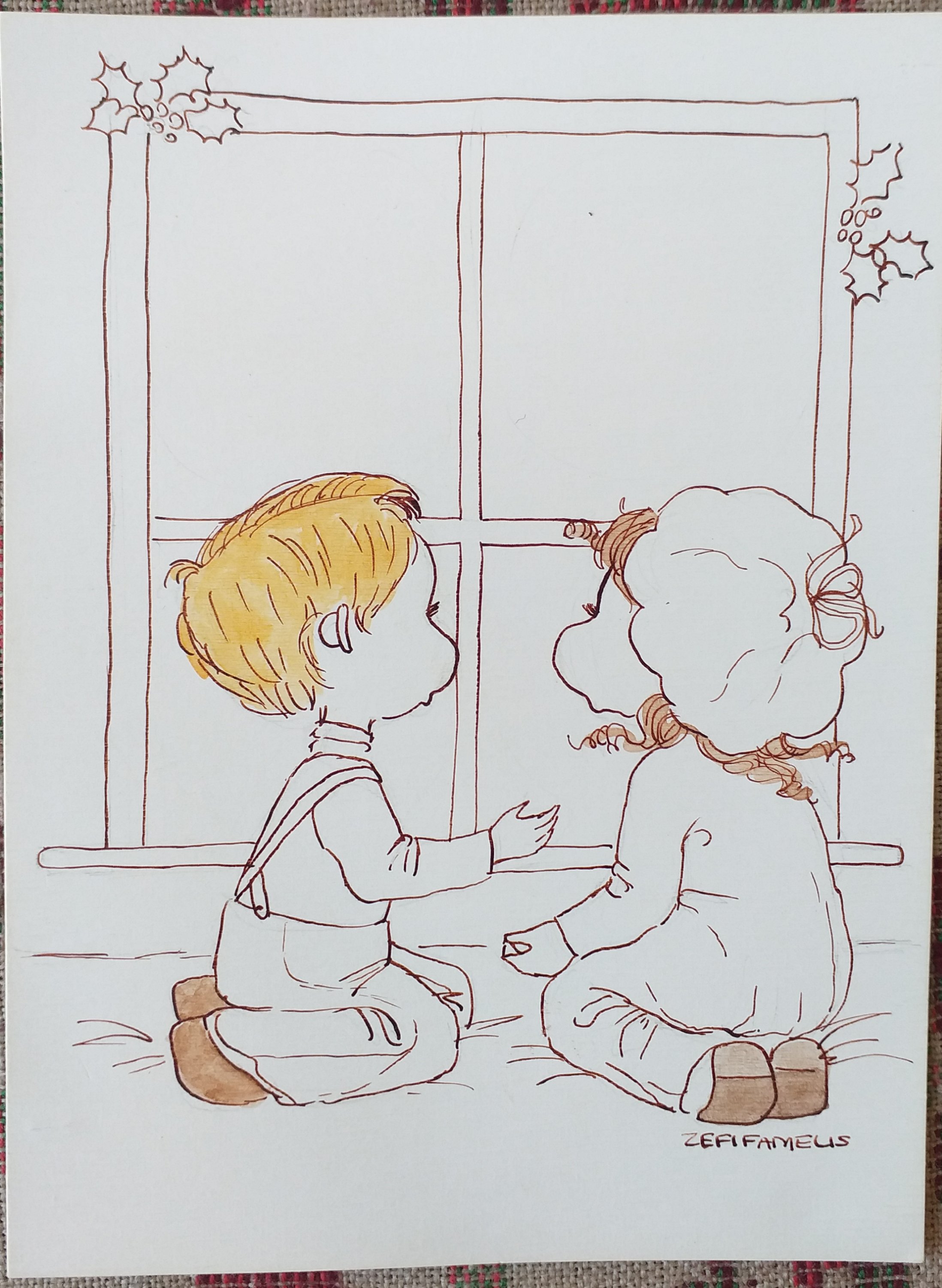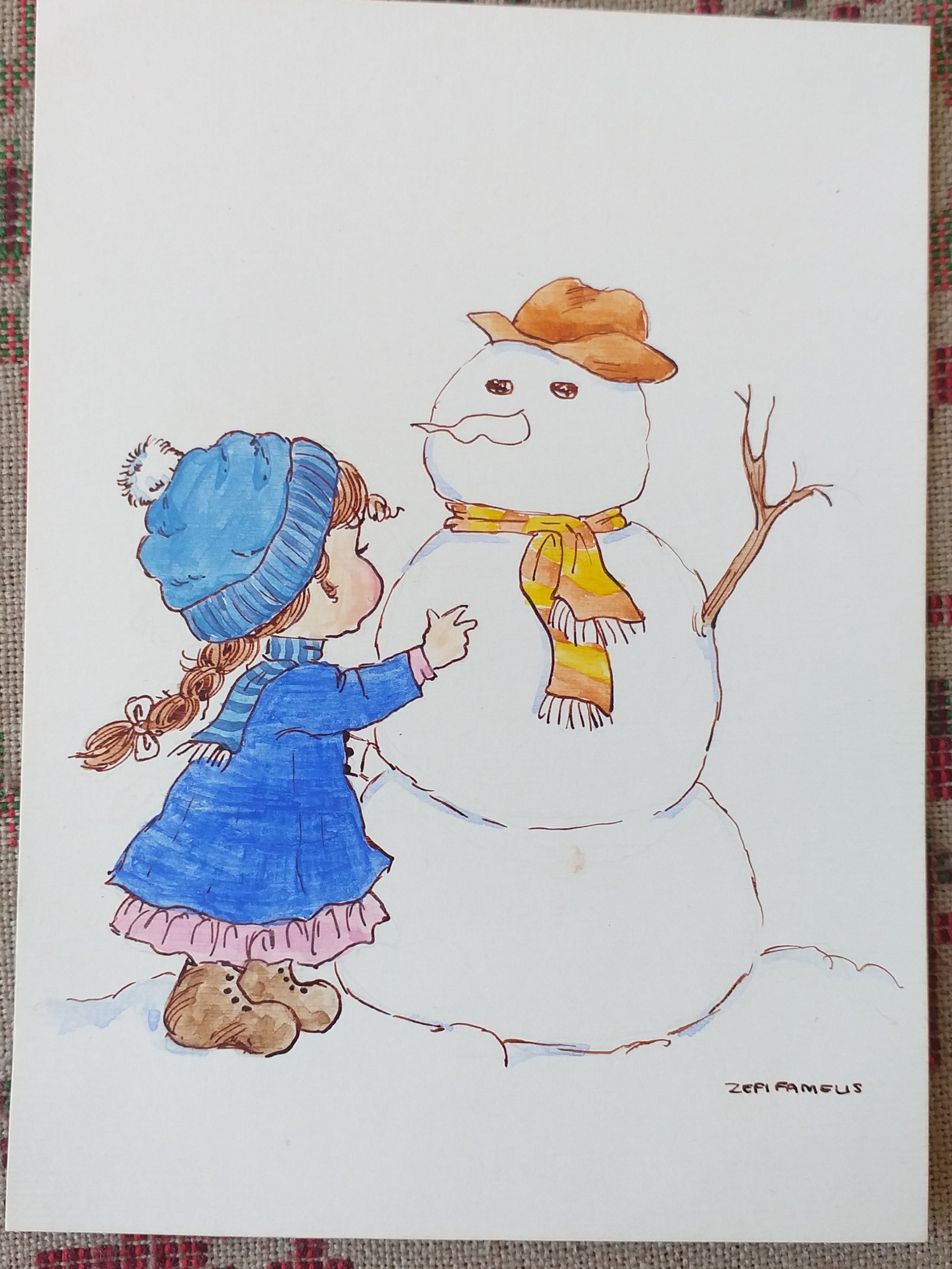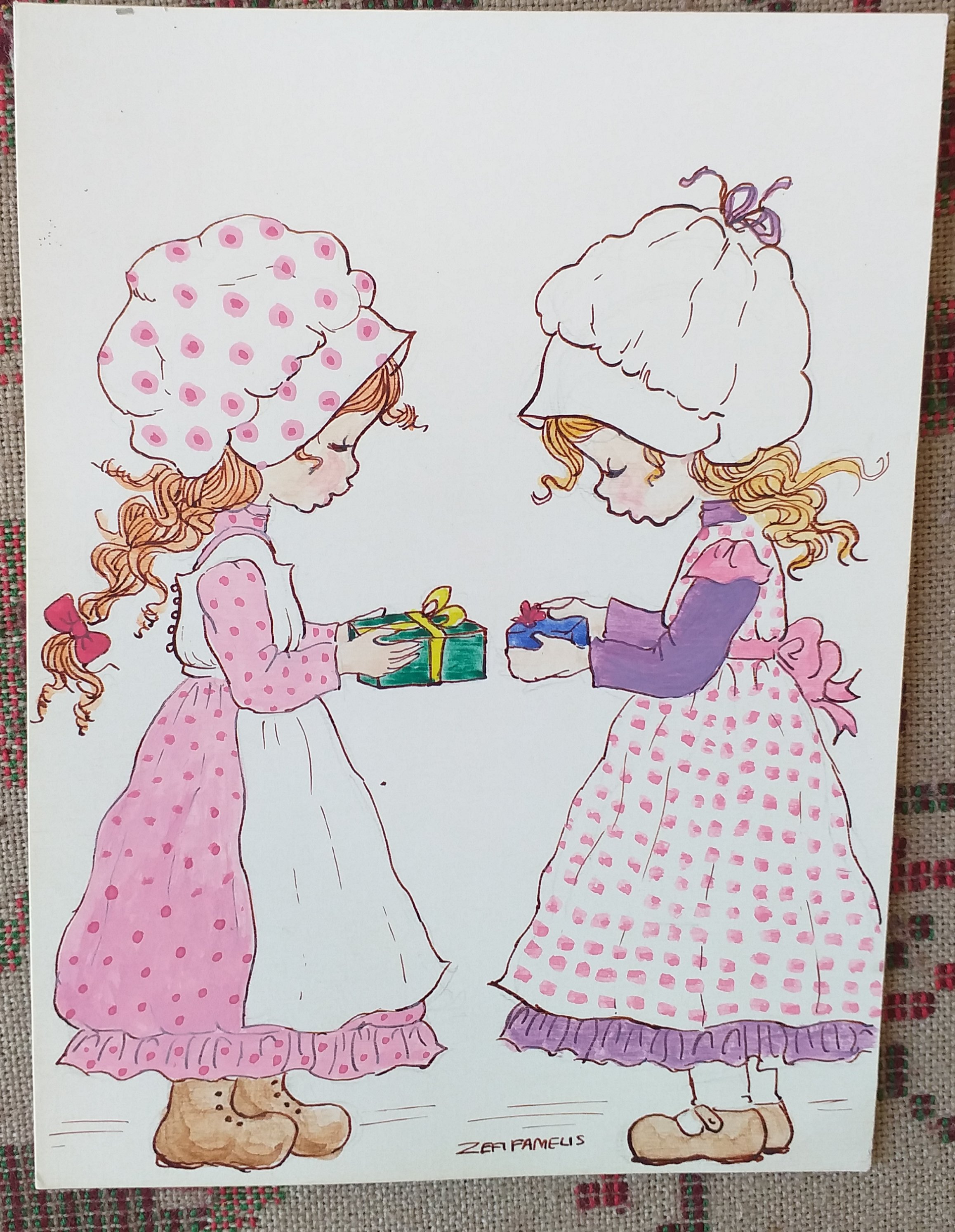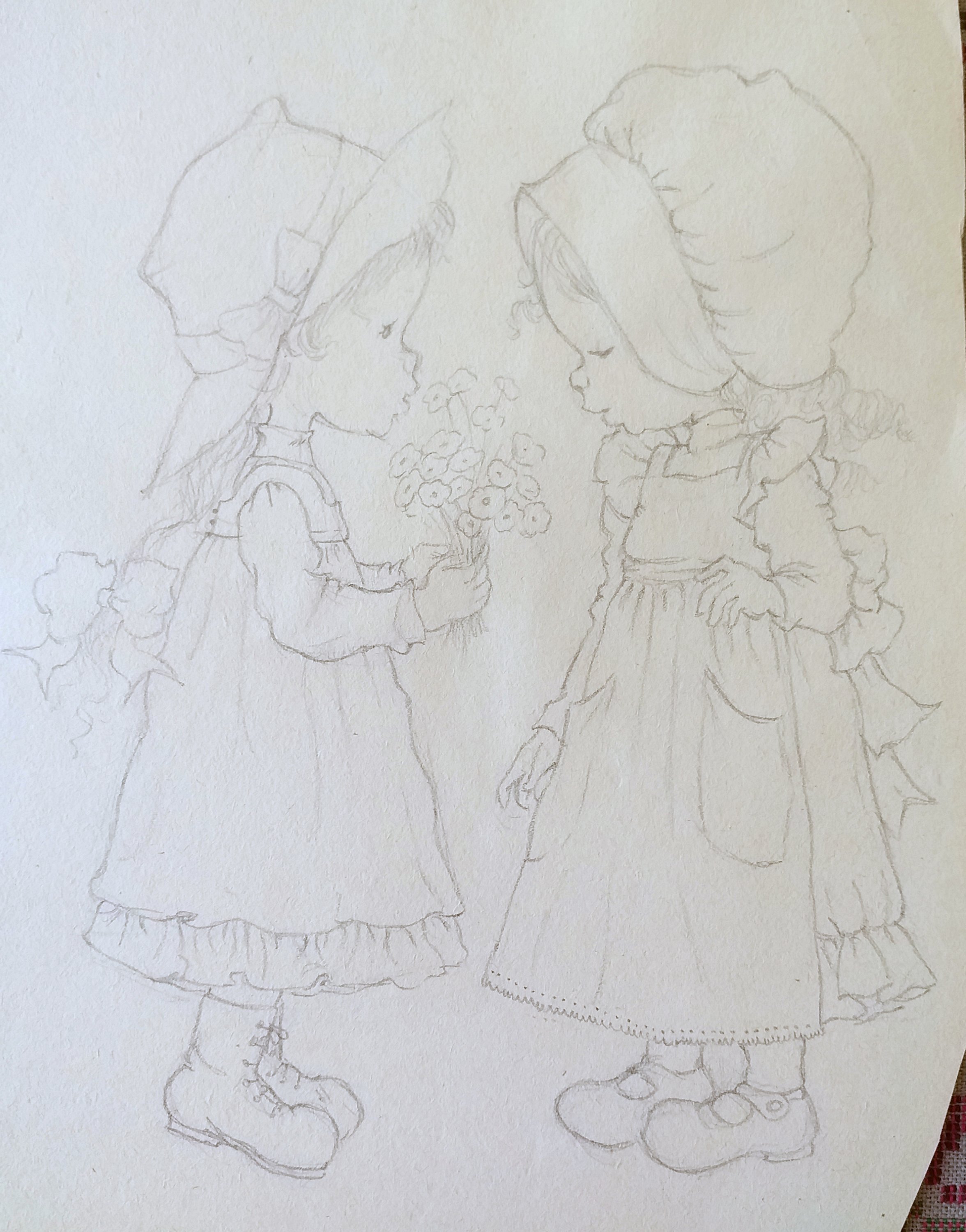 Then there were the Holly Hobby years, when I sketched little girls everywhere and made hand painted cards for Christmas…. (I was also very much into letter writing back then.)
