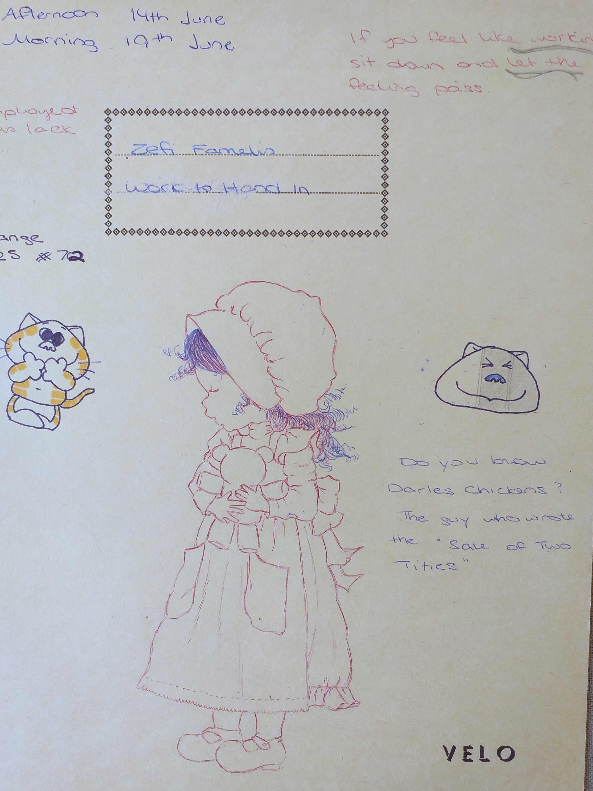 While sorting the chests and boxes upstairs in the laundry I discovered a stack of old sketchbooks and drawings from my childhood and teens.