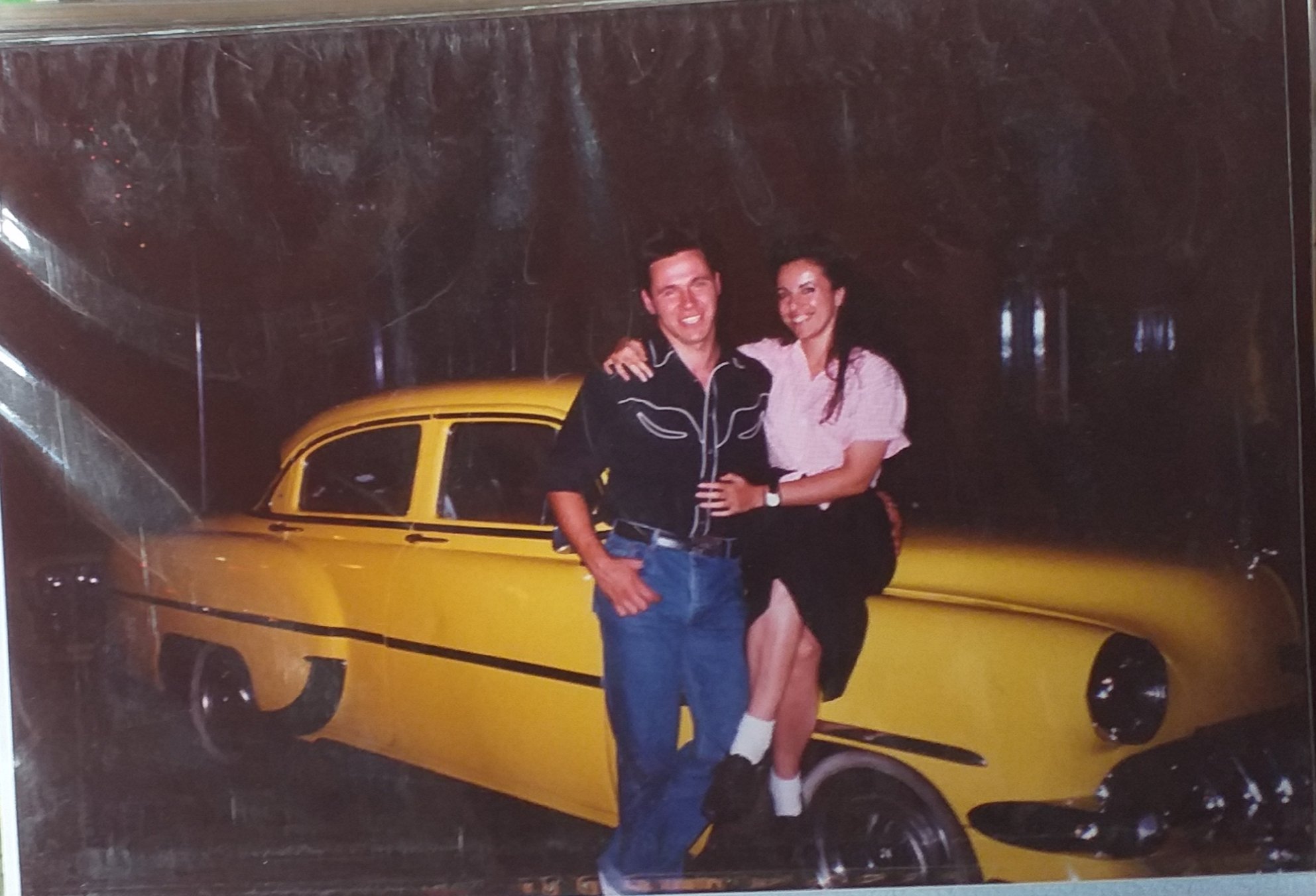 Where else would we be? At a car show. Wearing my two tone dancing shoes. I still have the pencil skirt I made – its impossibly tiny.