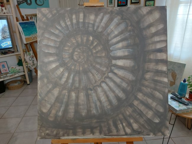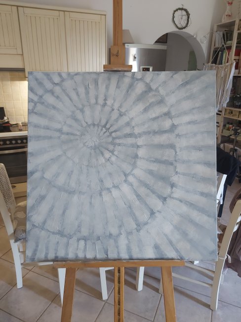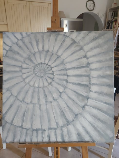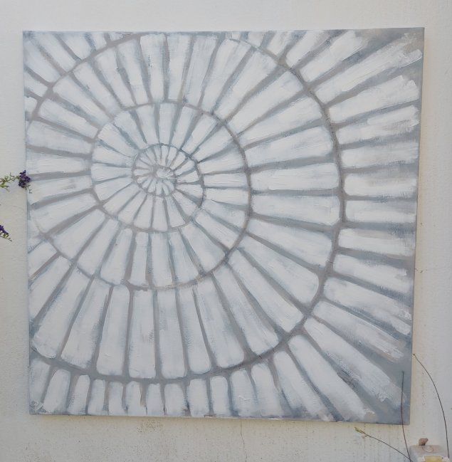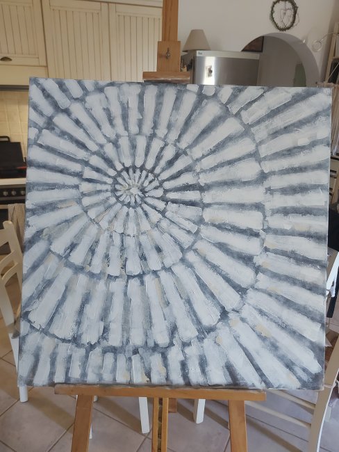 Its a large piece as I mentioned, about 90cm square. On recycled canvas.