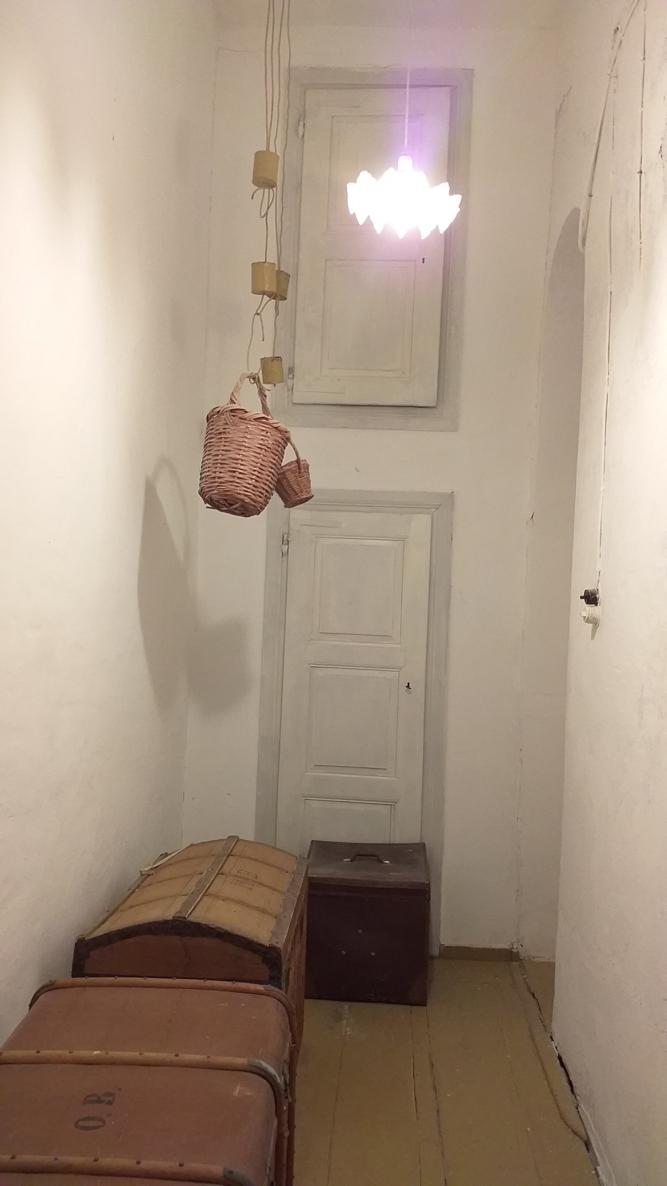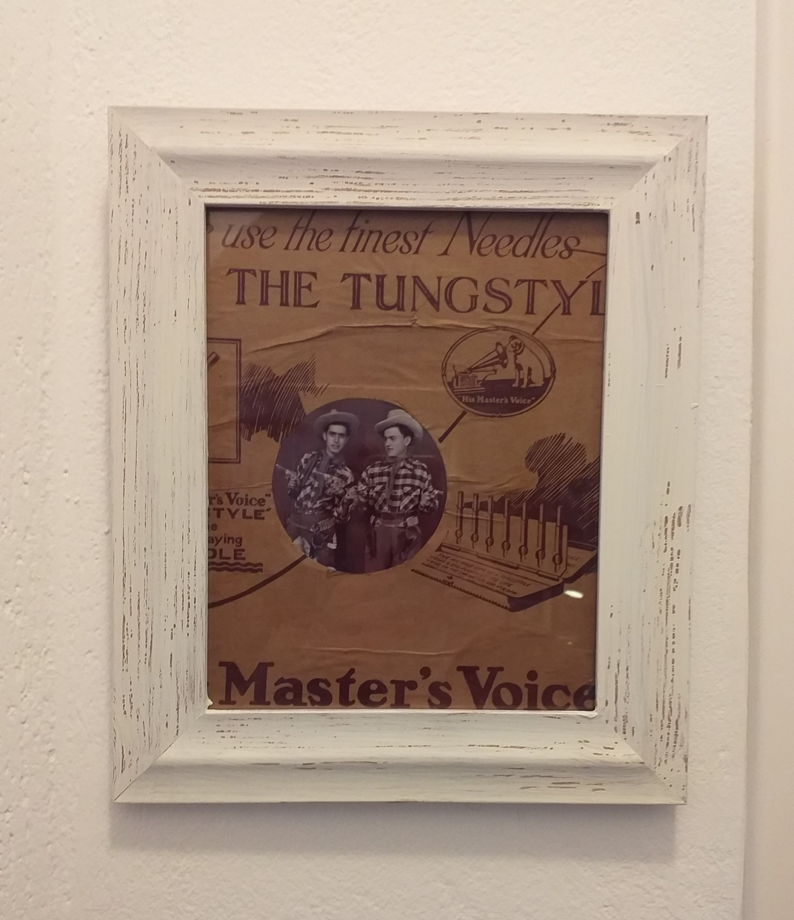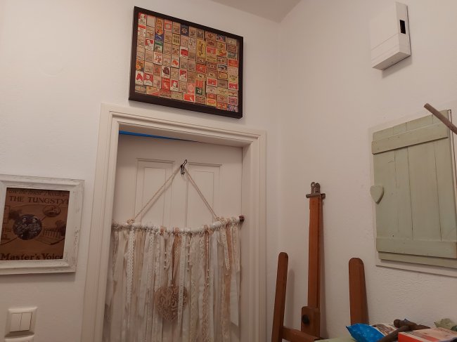 Given my place is small and there are already too many things in it, there wasn’t much choice of where to put it. For now I’ve hung it over the bathroom door, near the framed photo of dad in a cowboy costume. You can see that photo here.
