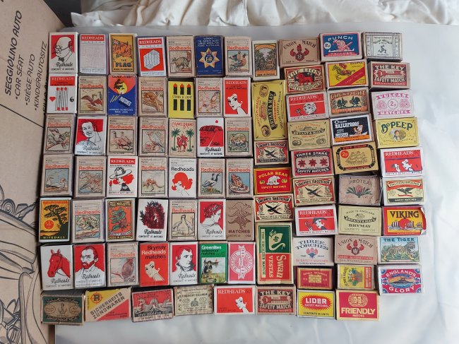 Among the things I’d left to ‘deal with later’, was dad’s collection of match boxes. There was a laundry basket full of them. There were tons from all over the world, nothing significant, but some pretty ones that appealed to me.
