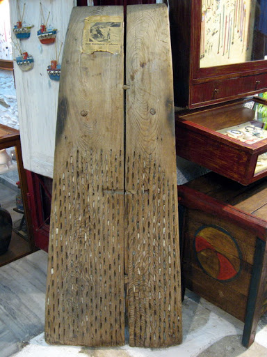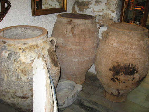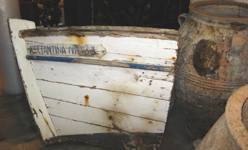 No greek antique shop would be complete without part of an old fishing boat or ceramic urns.