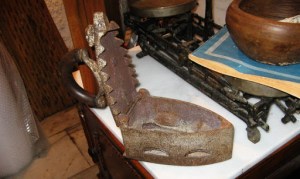 This I do remember. Mom had one somewhere. Of course it was painted (thanks dad) with anti-rust black. Its an old iron. Unlike the old irons I’ve seen in Australia which are solid iron and were placed on top of hot coats, these irons opened up and you would put hot coals inside them.