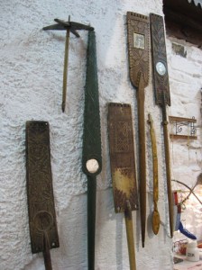 I had no idea what these were so I had to ask – they are the stamp/moulds bakers use when baking ‘arto’ for the church. Arto is a blessed bread handed out at services and it always has a pretty pattern on top. Now I know how they get it!