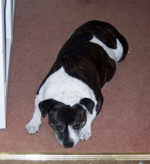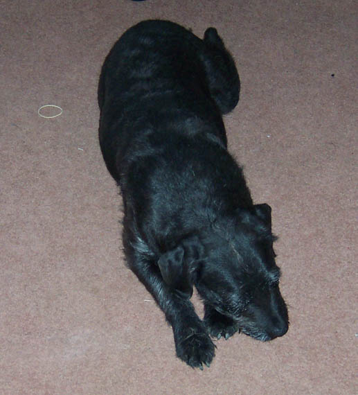 This is Mischa. His poor long suffering mother. She lies in the office doorway, guarding and being good while Barney finds things to chew.