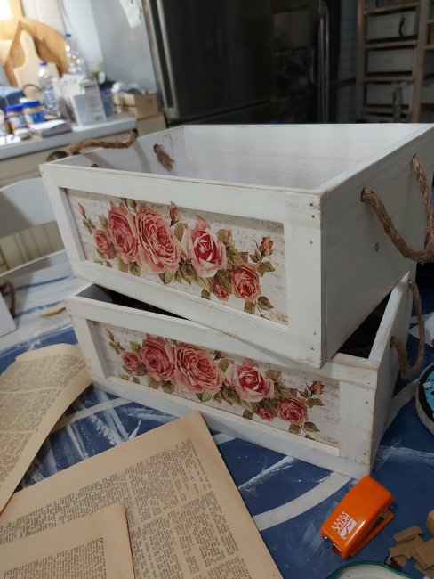 I bought these wooden objects off Temu and wanted to try different treatments so see what I liked. I tried decoupage of some napkins I had.