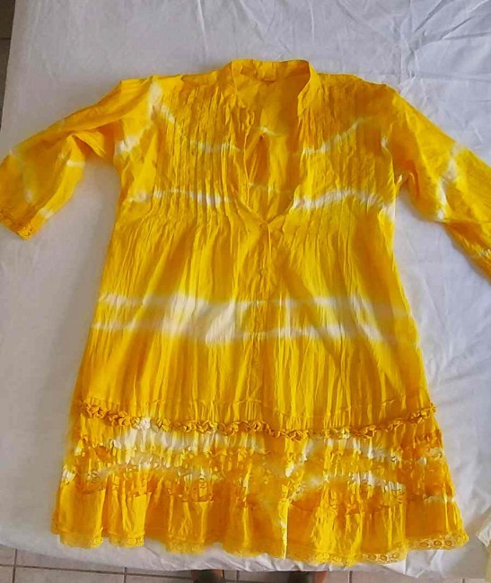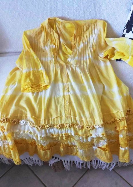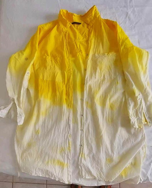 And here is the result after washing twice. A much softer yellow, but still pretty. This top looks better than the other one. I think the other one will need re-dyeing…
